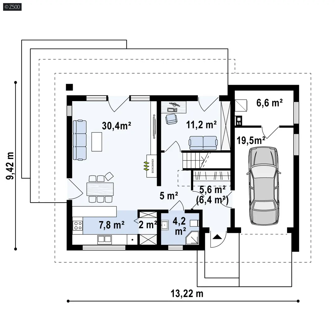 Z240 to niezwykle komfortowy dom z poddaszem użytkowym oraz garażem jednostanowiskowym.